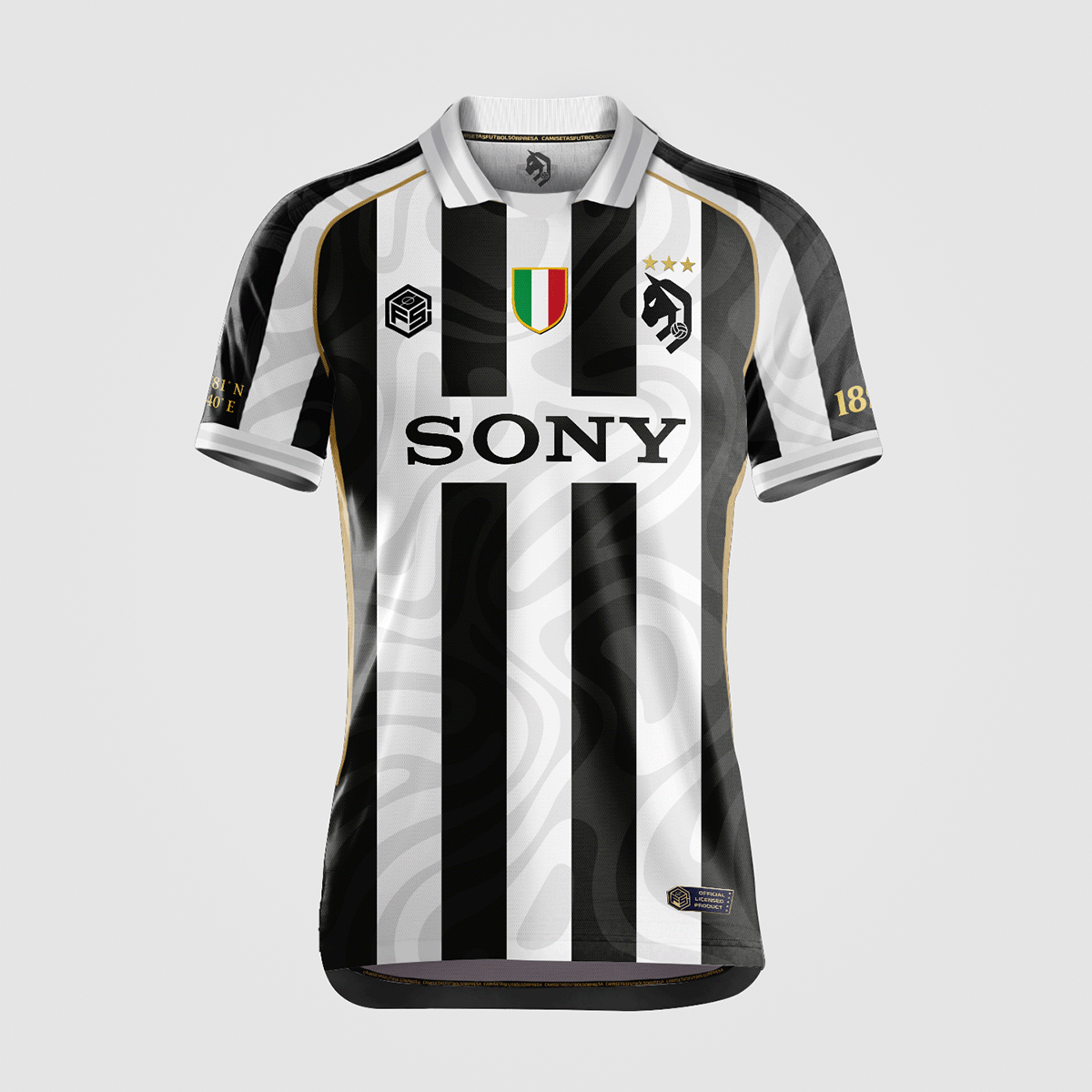 Esta edición especial rinde tributo a las icónicas franjas blancas y negras, reinterpretadas con nuestro sello único y un escudo rediseñado que le aporta carácter. En el pecho destaca la histórica publicidad Sony, emblema de una era inolvidable para el club. En mangas el año de fundación y las coordenadas de la localización de su estadio.
