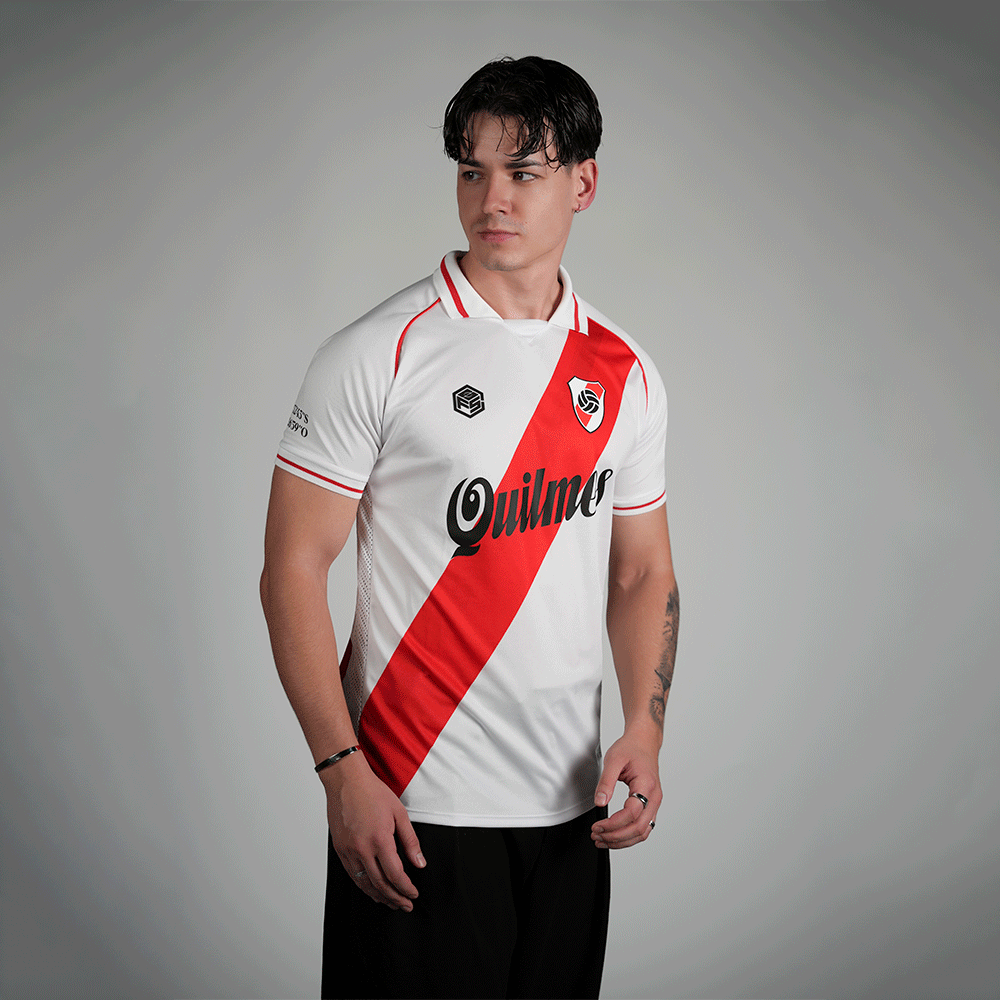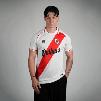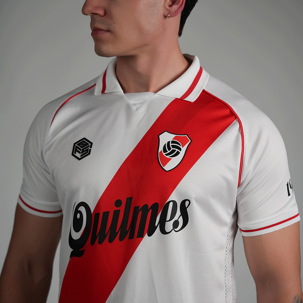 This special edition pays tribute to the unmistakable white with the diagonal red stripe , reinterpreted with our unique style and a redesigned crest that adds character. The classic Quilmes logo, an emblem of one of the club's most memorable eras, adorns the chest. The sleeves feature the founding year and the coordinates of the stadium's location.