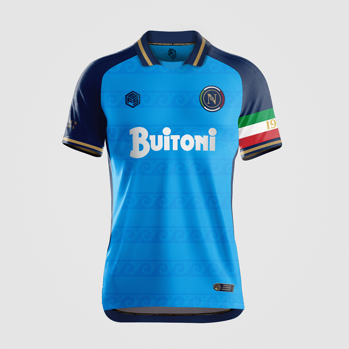 Esta edición especial rinde tributo al inconfundible azul celeste napolitano, reinterpretado con nuestro estilo único y un escudo rediseñado que aporta personalidad y carácter. En el pecho luce la icónica publicidad Buitoni, símbolo de una de las etapas más gloriosas del club con Diego Armando Maradona. En mangas el año de fundación y las coordenadas de la localización de su estadio.