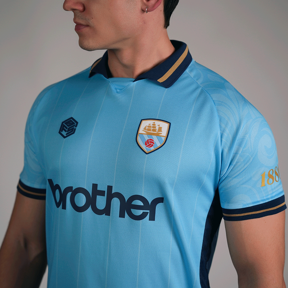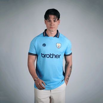 This special edition pays tribute to the classic sky blue of the Citizens, reinterpreted with our unique style and a redesigned crest that adds character and personality. The iconic Brother sponsor logo, a symbol of an unforgettable era for the club, is prominently displayed on the chest. The sleeves feature the founding year and the coordinates of the stadium's location.