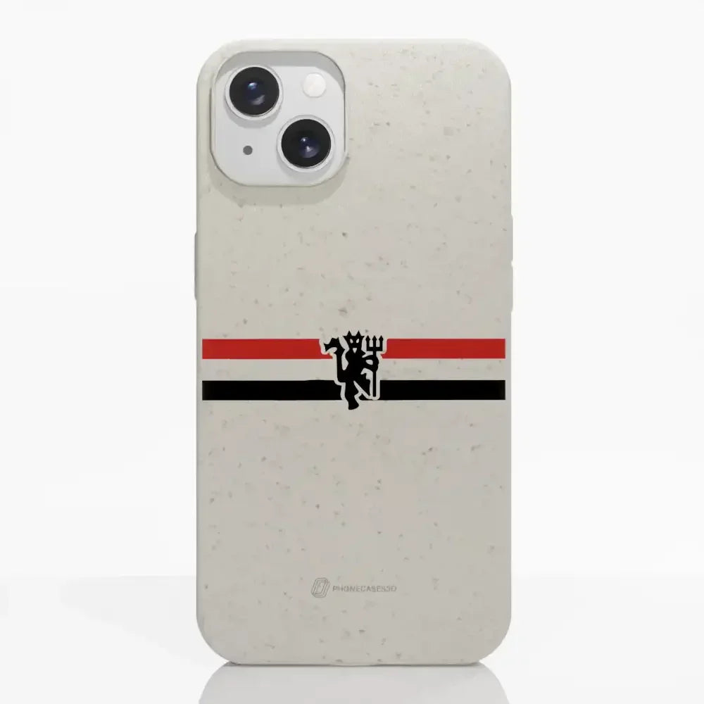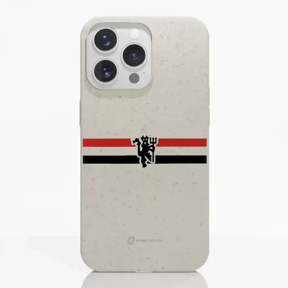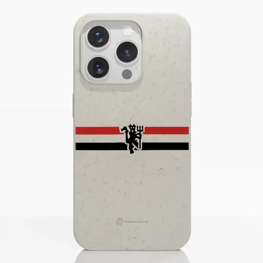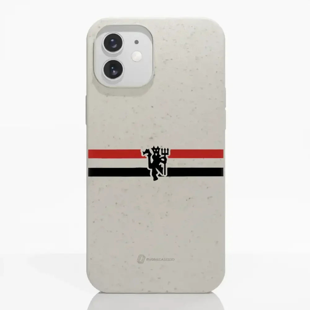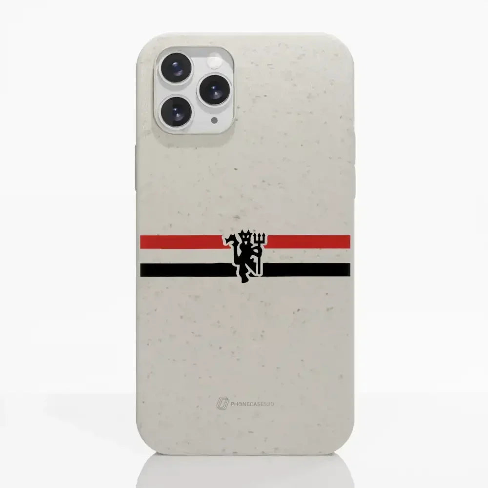 Funda de Teléfono Compostable Oficial de Manchester United – Rayas Diagonales y Diablo