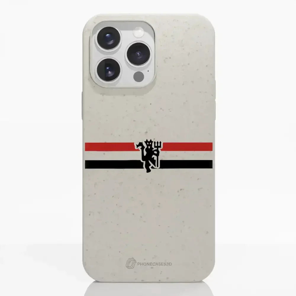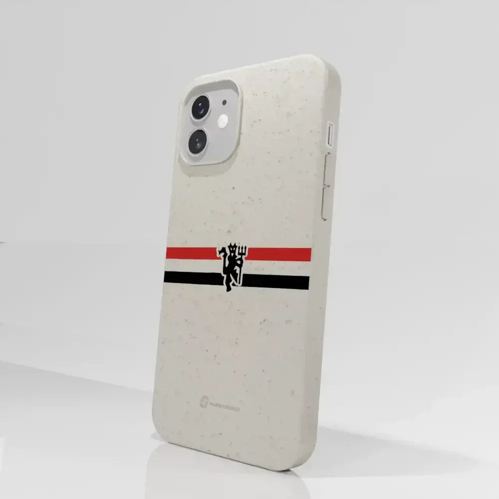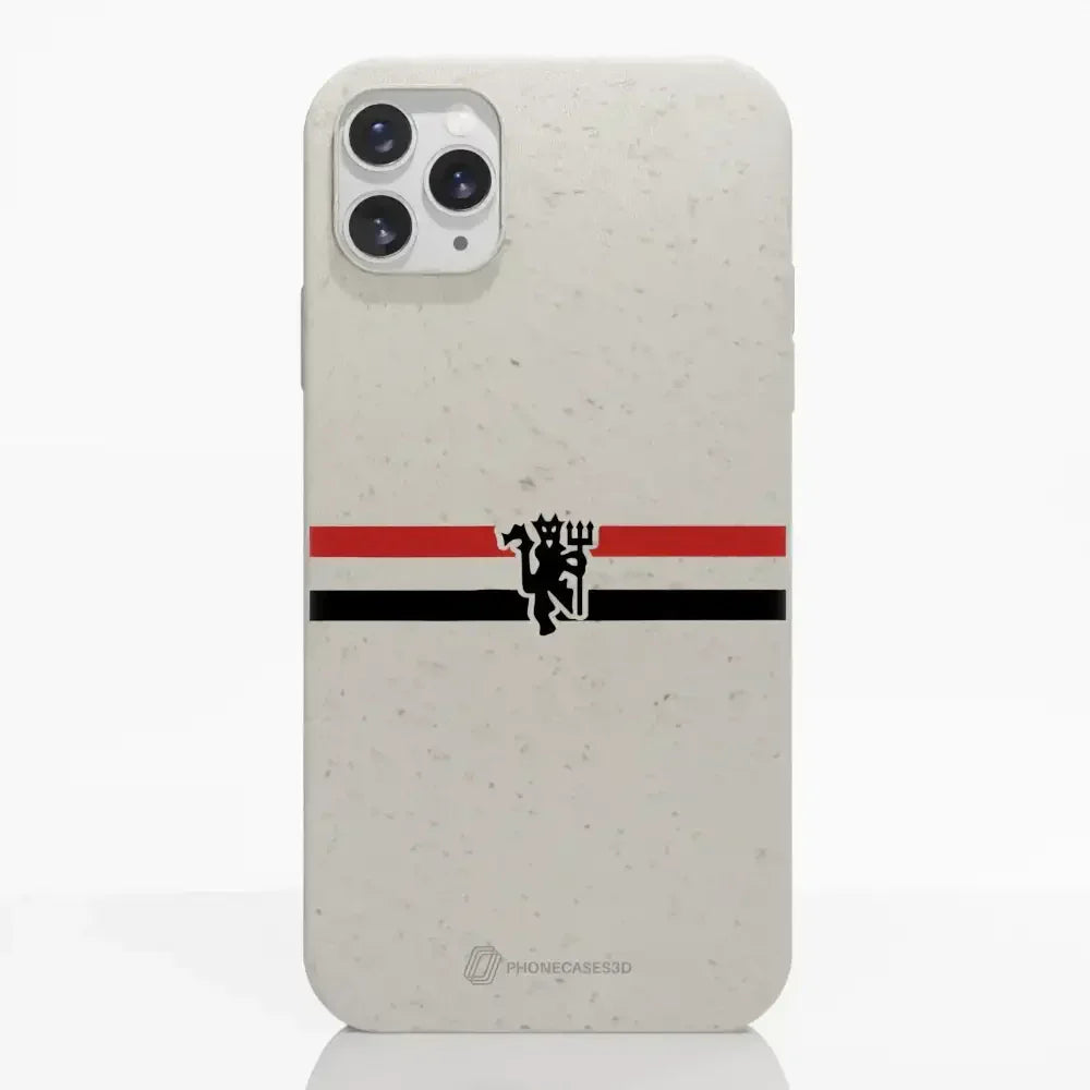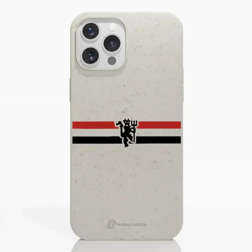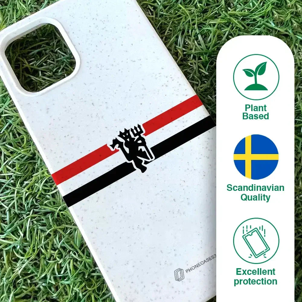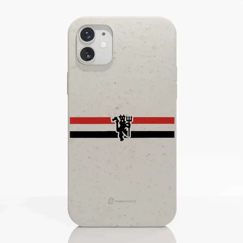 Funda de Teléfono Compostable Oficial de Manchester United – Rayas Diagonales y Diablo