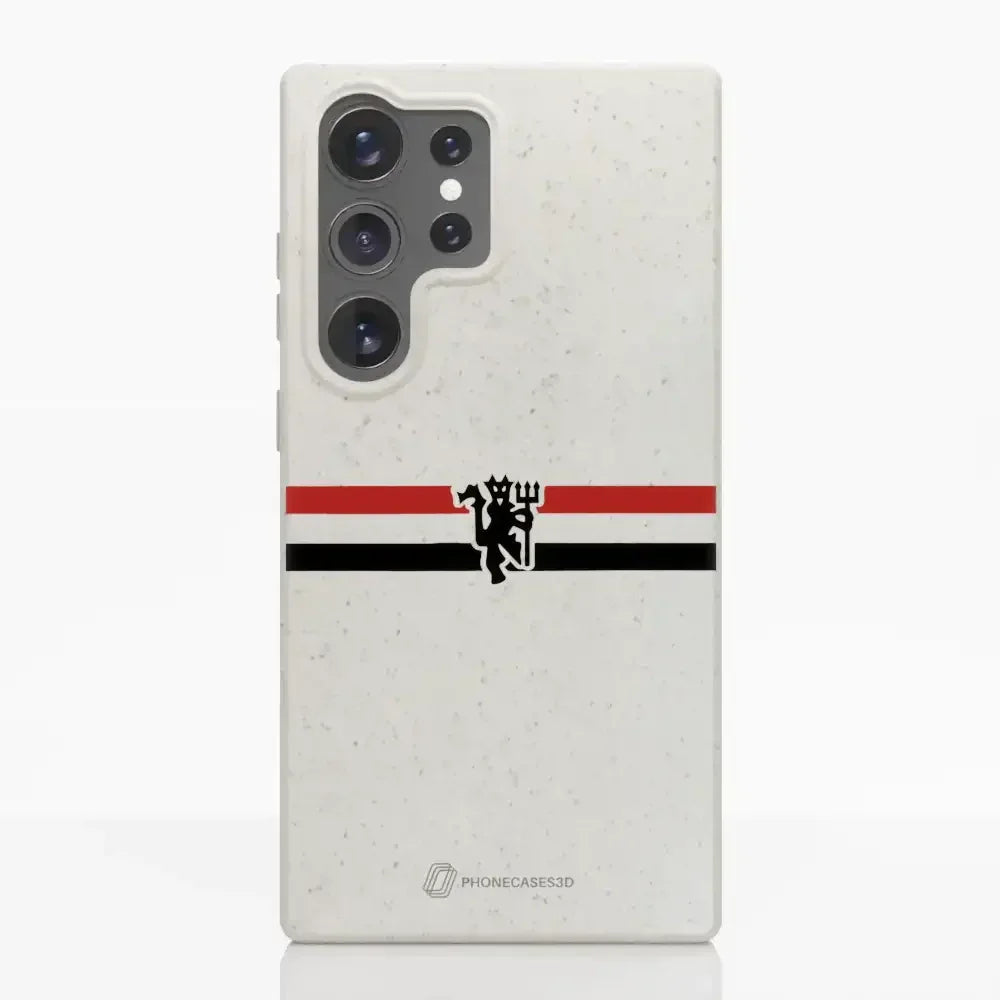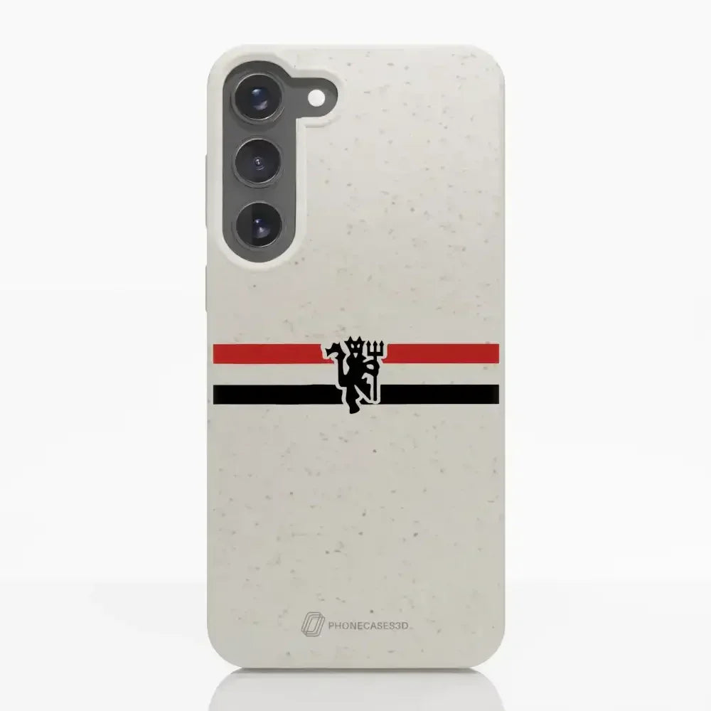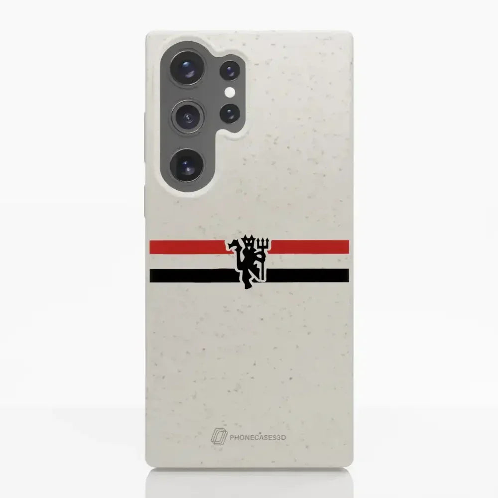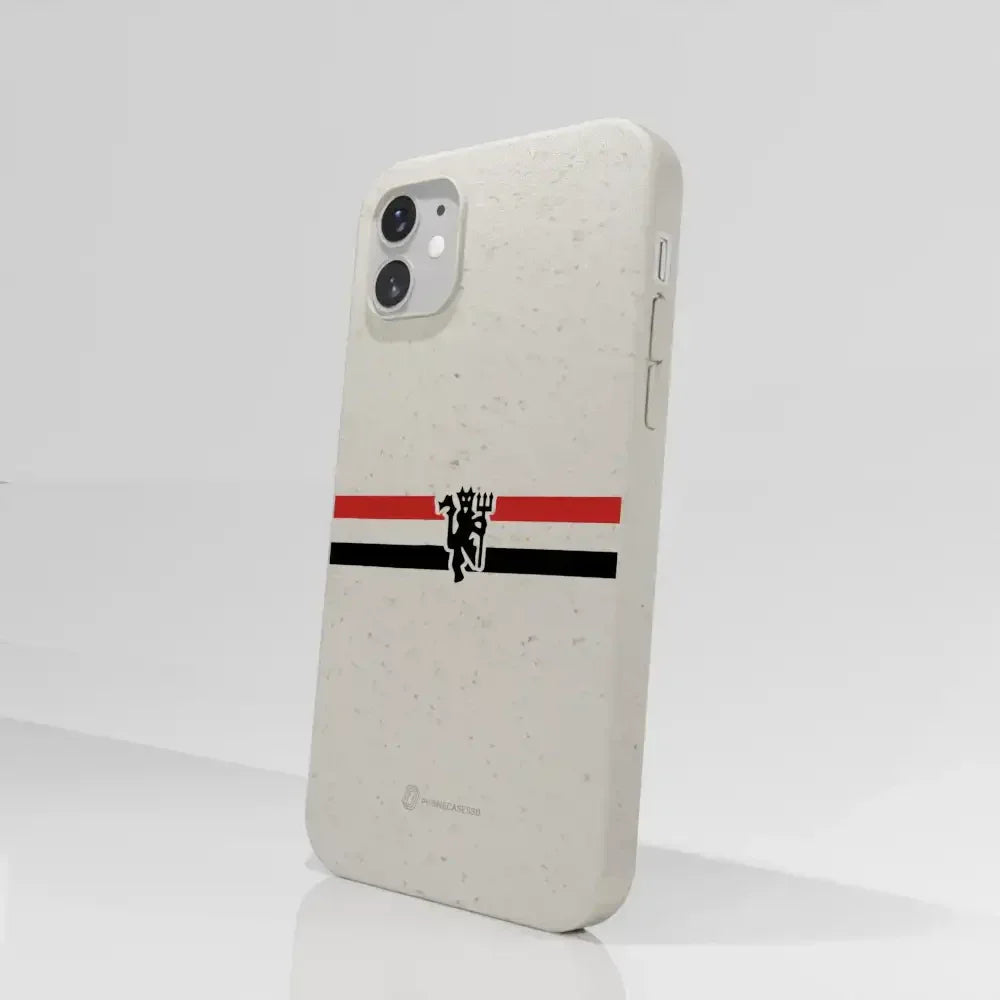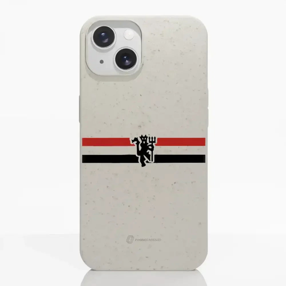 Funda de Teléfono Compostable Oficial de Manchester United – Rayas Diagonales y Diablo