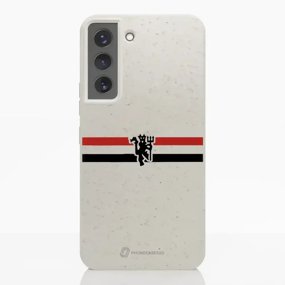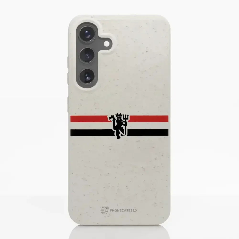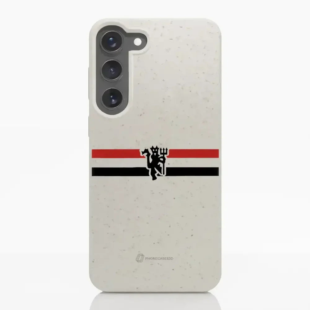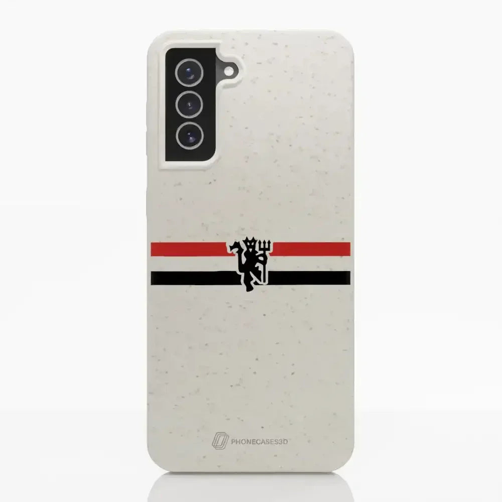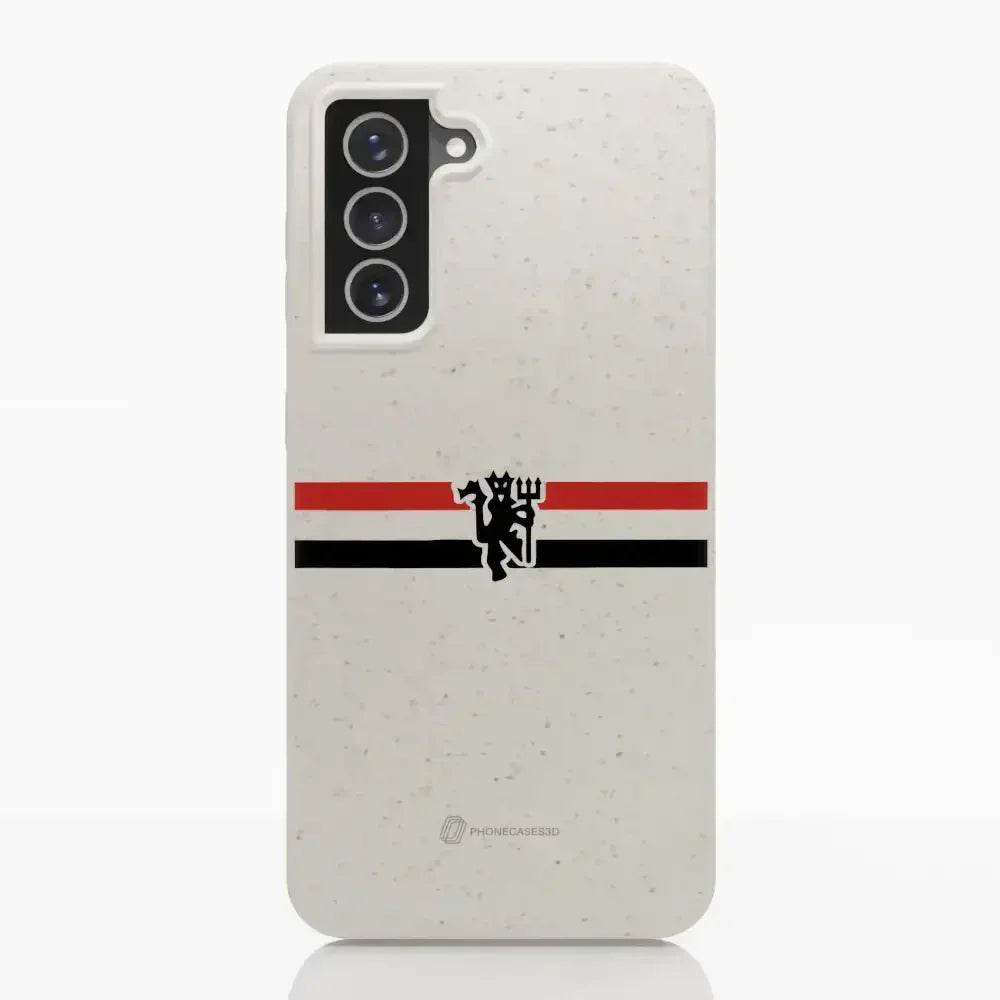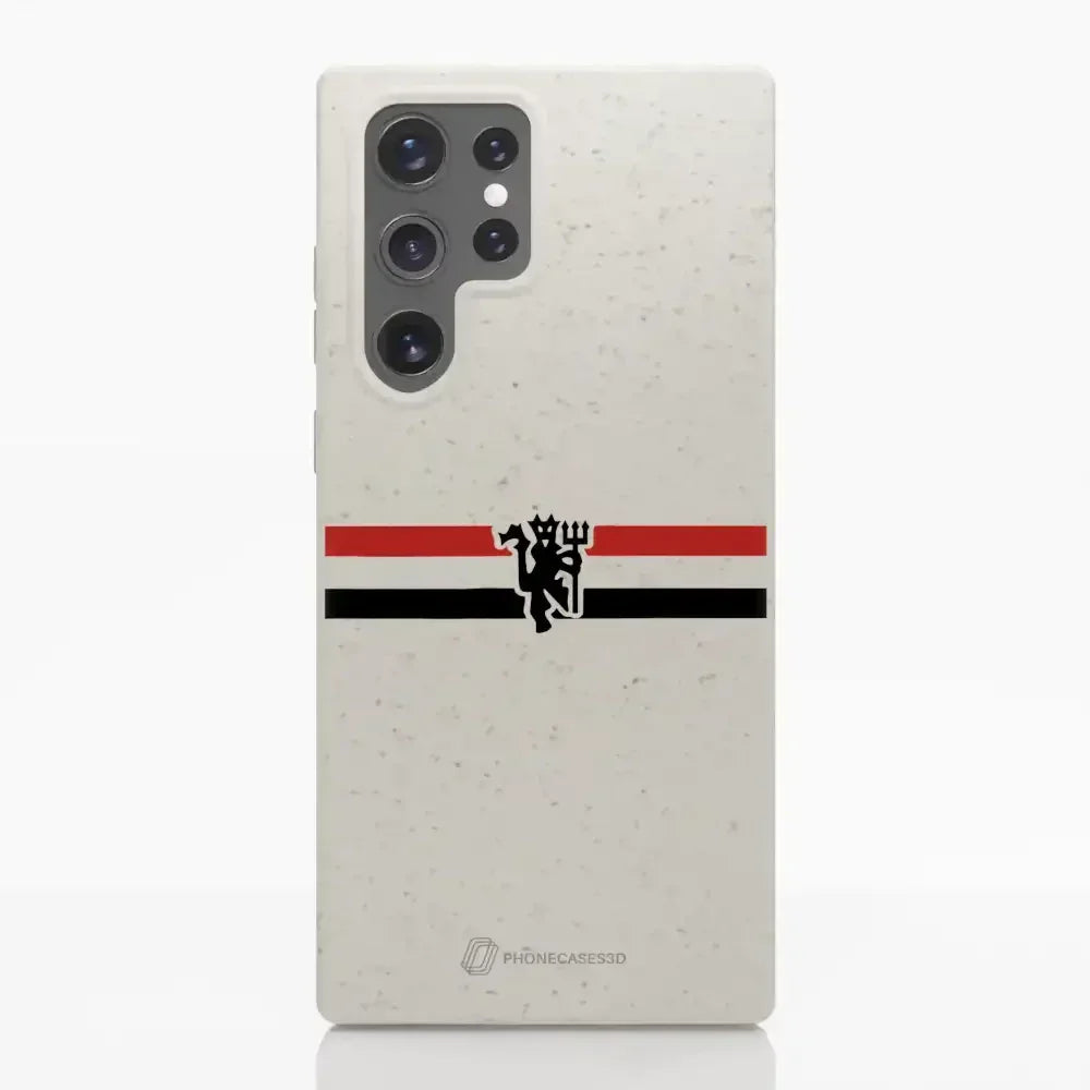Funda de Teléfono Compostable Oficial de Manchester United – Rayas Diagonales y Diablo
